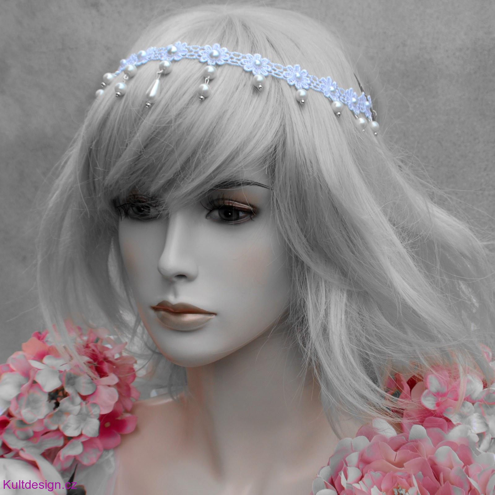 Něžná krajková čelenka do vlasů ozdobená perličkami