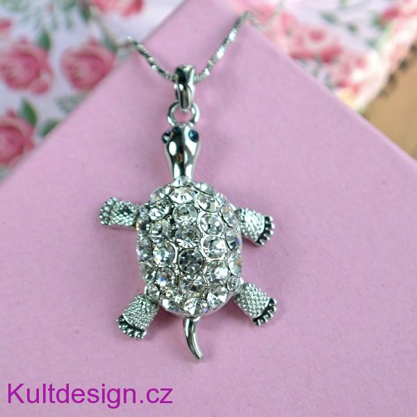 Něžný náhrdelník z bižuterního kovu s třpytivým přívěskem