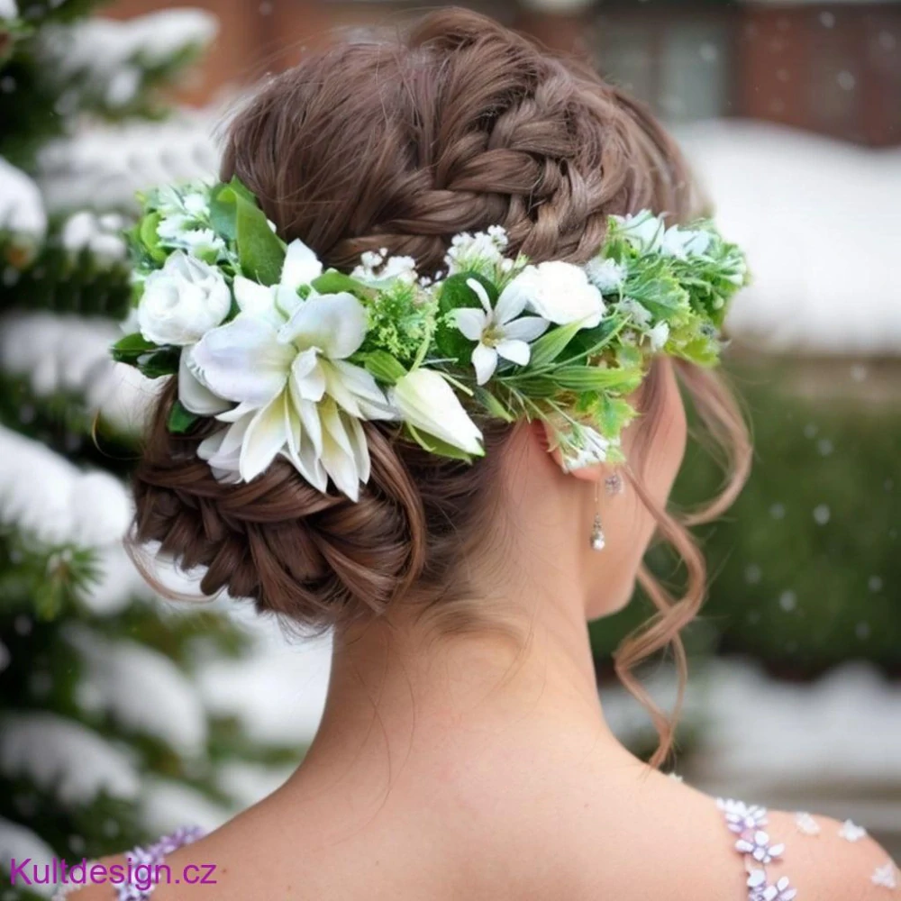 Květinový svatební věneček kombinace růžiček a rozličných rostlinek.