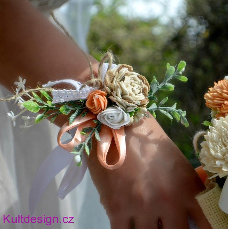 Květinový náramek je vhodný pro nevěsty na svatební hostinu a veselé plesání, když odloží svatební kytici, nebo pro družičky nebo svědkyně , které budou krásně sladěné v barvách vaší svatby a přitom budou mít volné ruce k tomu, aby vám mohly přepudrovat nosík nebo upravit účes a šaty (a od toho družičky jsou, ne ?)