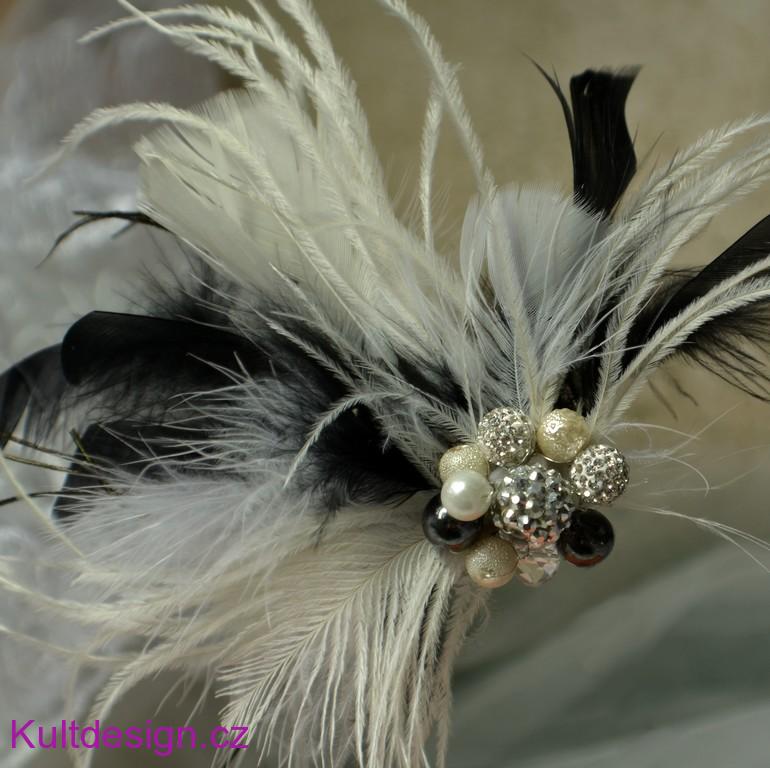Spona z peří bílá ivory černá