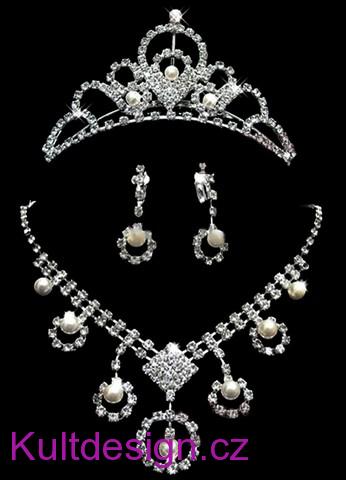 Luxusní souprava svatební bižuterie. Set šperků obsahuje : náhrdelník, náušnice Materíál : postříbřený kov, krystaly , syntetické perly Velikost náhrdelníku : délka cca 50 cm - nastavitelná Náušnice : 5 cm Dodáváme v dárkové krabici. celý popis