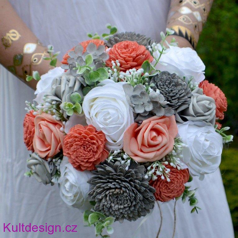 Svatební kytice z kvalitních umělých květin – ruční výroba v ČR