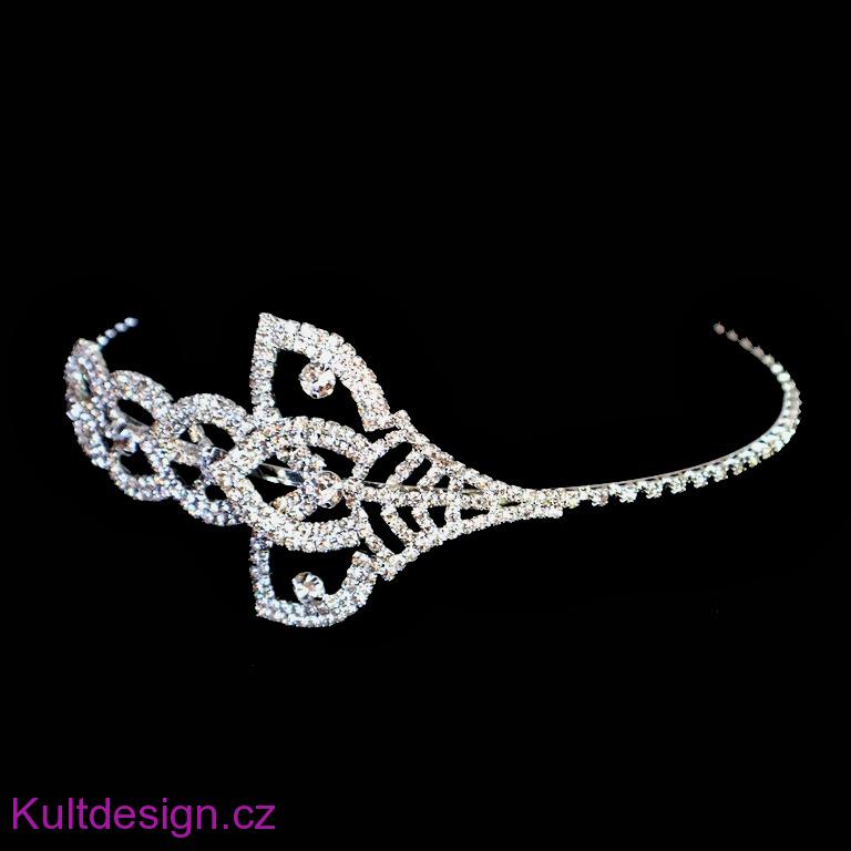 Svatební štrasová čelenka s ozdobou na straně, tiára.