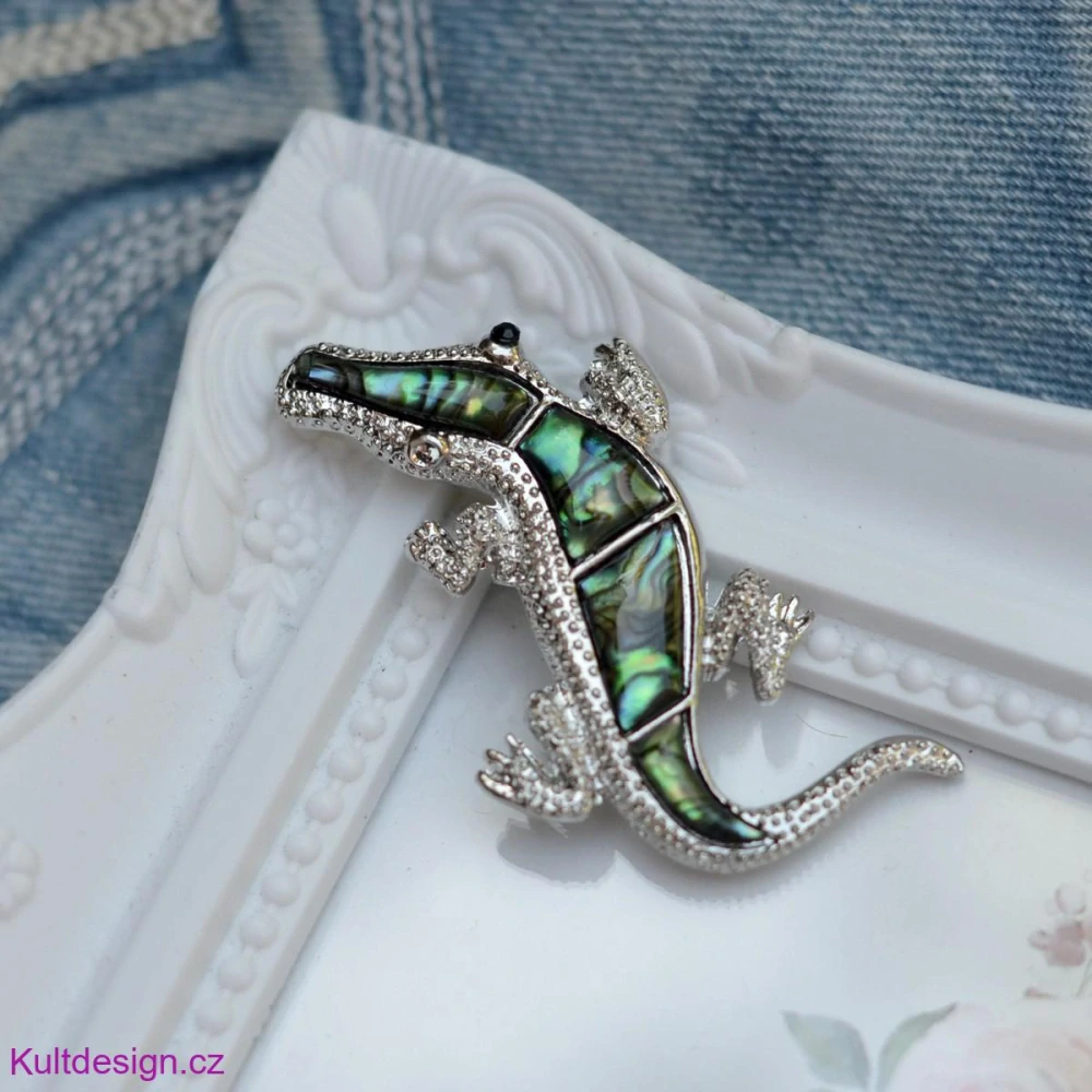 Elegantní brož vyrobená z bižuterního kovu a zdobená syntetickou perletí v odstínech inspirovaných lasturou Paua. Stylový doplněk, který oživí každý outfit – hodí se na sako, šaty i kabát. Snadno se kombinuje s dalšími módními doplňky.
