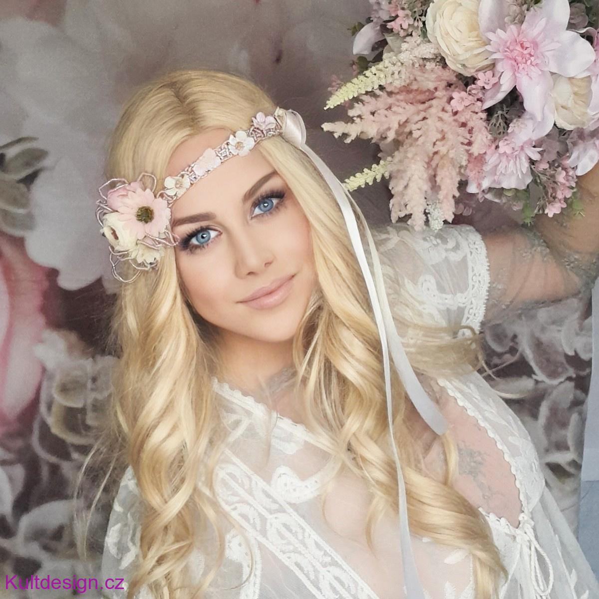 Naše výrobky jsou převážně ručně vyráběné originály, které fotíme klasicky jako produktovou fotografii, ale abychom vám lépe ukázali, jak vypadají na nevěstě, ve vlasech nebo v ruce u některých výrobků používáme digitálně vytvořené modelky pomocí AI. (toto se týká především svatebních věnečků a čelenek)