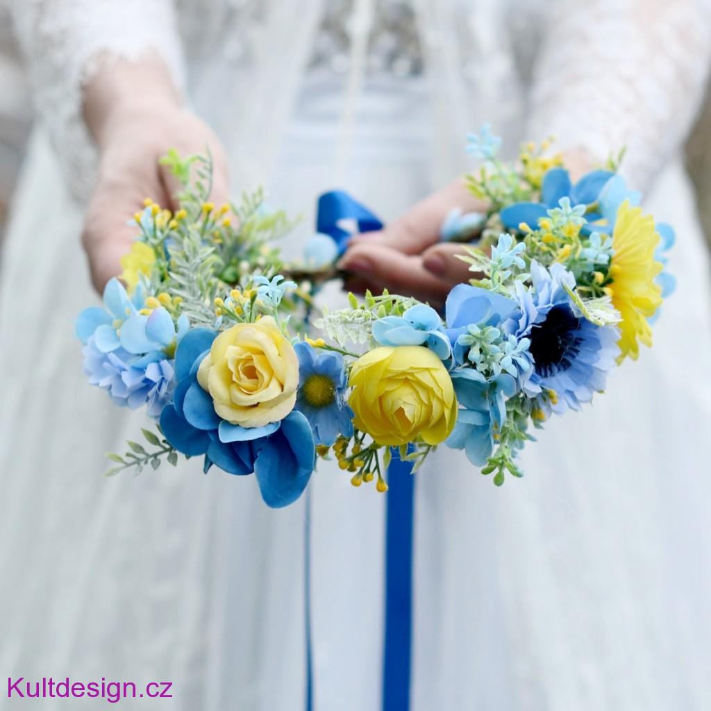 Květinový věneček do vlasů modrožlutý550 CZK/ ks