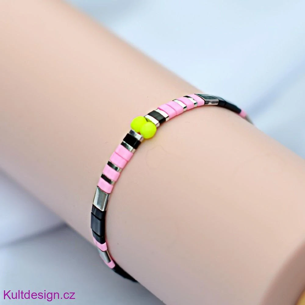 Miyuki náramek neonky, černá stříbrná