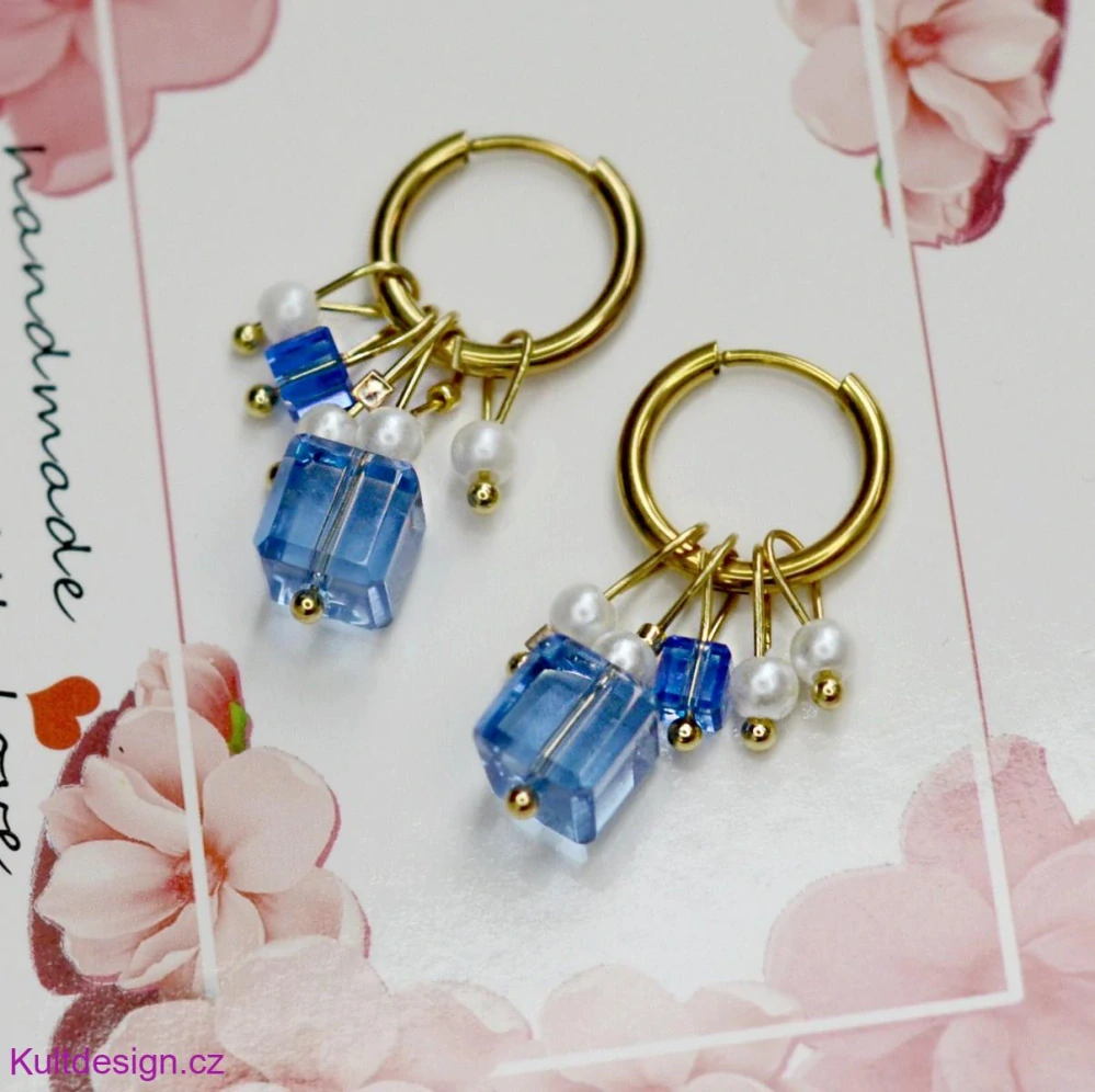 Ocelové náušnice kostičky nebesky modré310 CZK/ ks