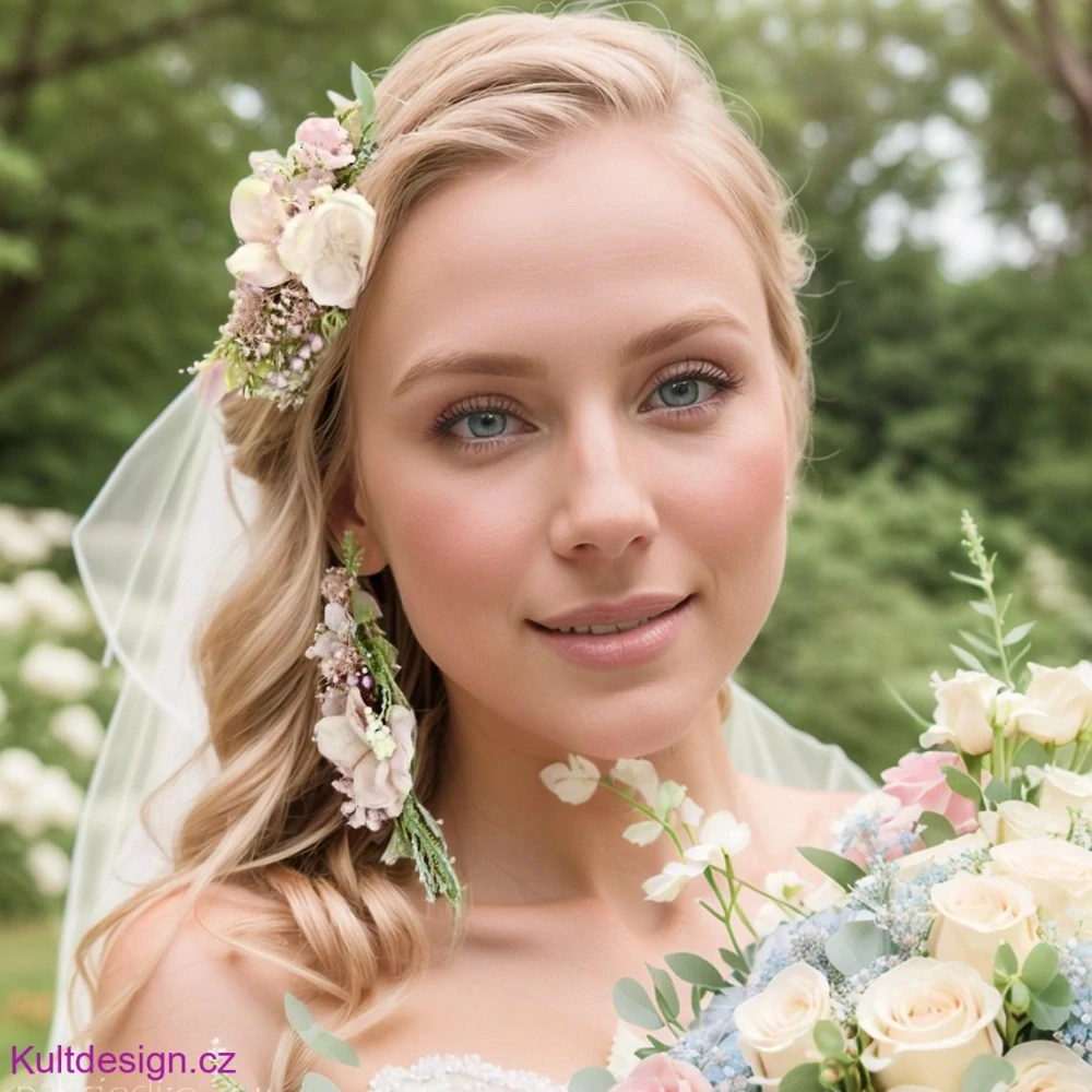 Nový svatební trend, květinová spona do vlasů ladí s velkou náušnicí, která je doplněna druhou malinkou ve stejném stylu