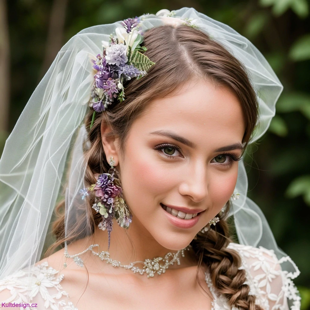 Nový svatební trend, květinová spona do vlasů ladí s velkou náušnicí, která je doplněna druhou malinkou ve stejném stylu