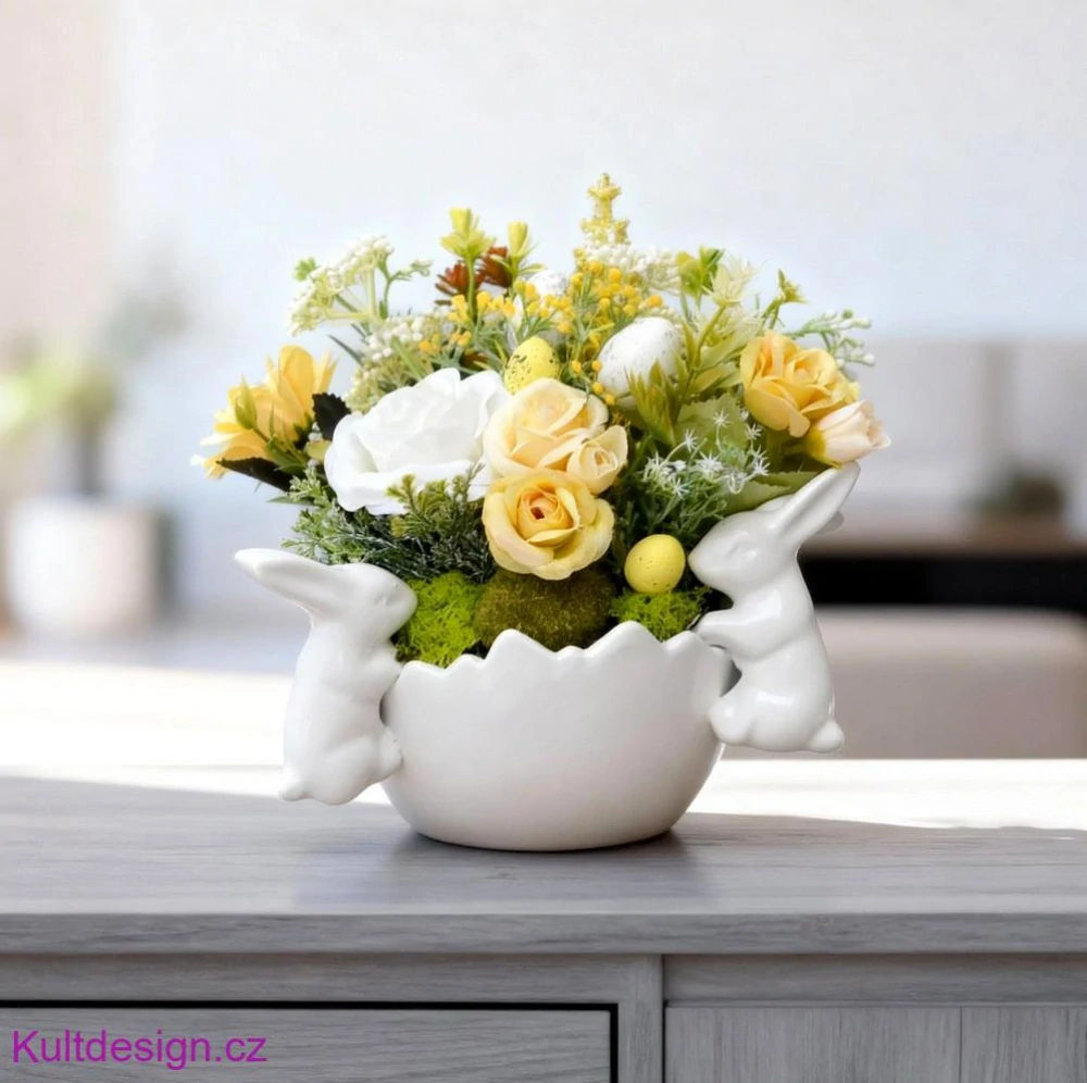 Materiál: keramika - nádoba, umělé květiny, velikonoční komponenty