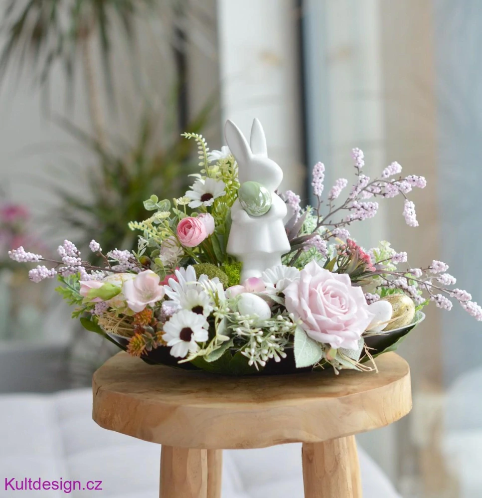 Velikonoční květinová dekorace se zajíčkem770 CZK/ ks